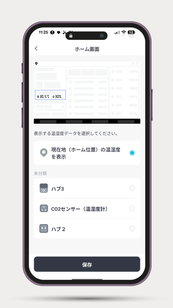外部センサー連携最大3台のSwitchBot温湿度計シリーズ・CO2センサーと連携し、複数地点の環境情報を同時表示