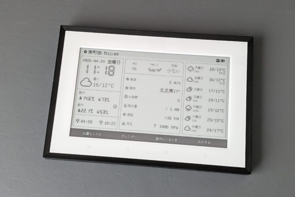 スマホやタブレットのような“情報デバイス感”が薄く、生活空間に自然に溶け込みます。
