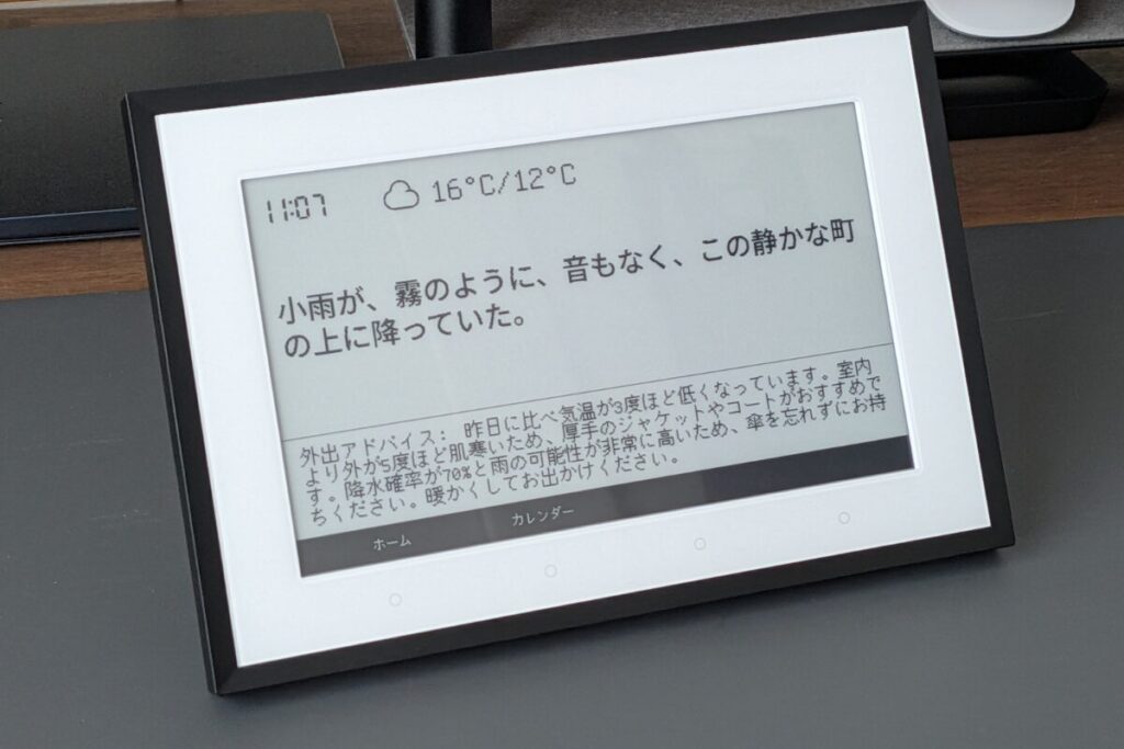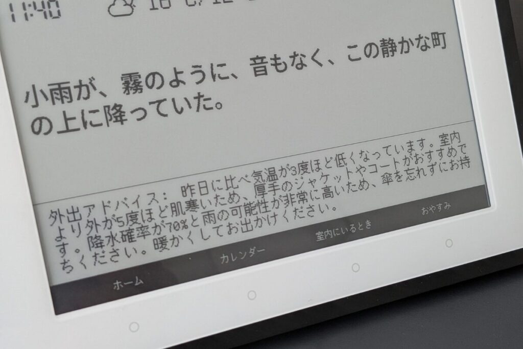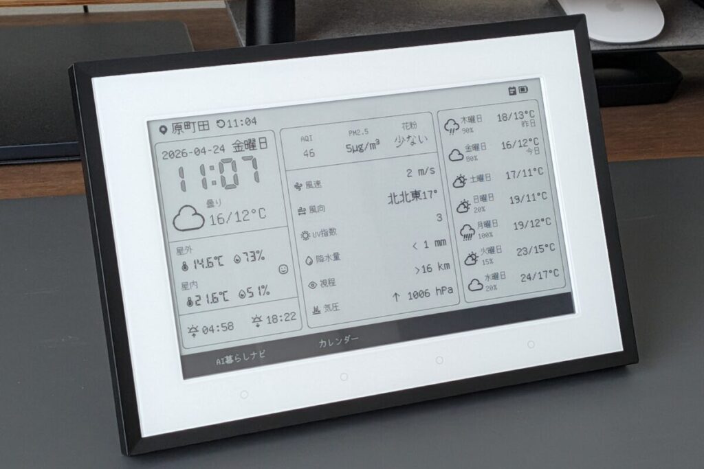 E-inkディスプレイにより、「目に優しく、常時表示に向いた設計」になっています。